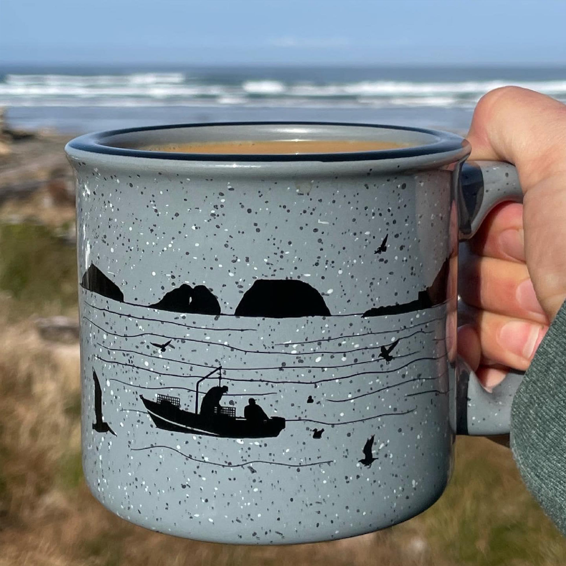 15oz heavy-duty ceramic campfire mugs, printed & kiln-fused locally in Hillsboro, Oregon, with my original Dishwasher- & microwave-safe artwork. People love our heavyweight ceramic mugs with comfy, large handles, perfect for sipping your favorite warm beverage or soup. 3.56" H x 4.125" Diameter.