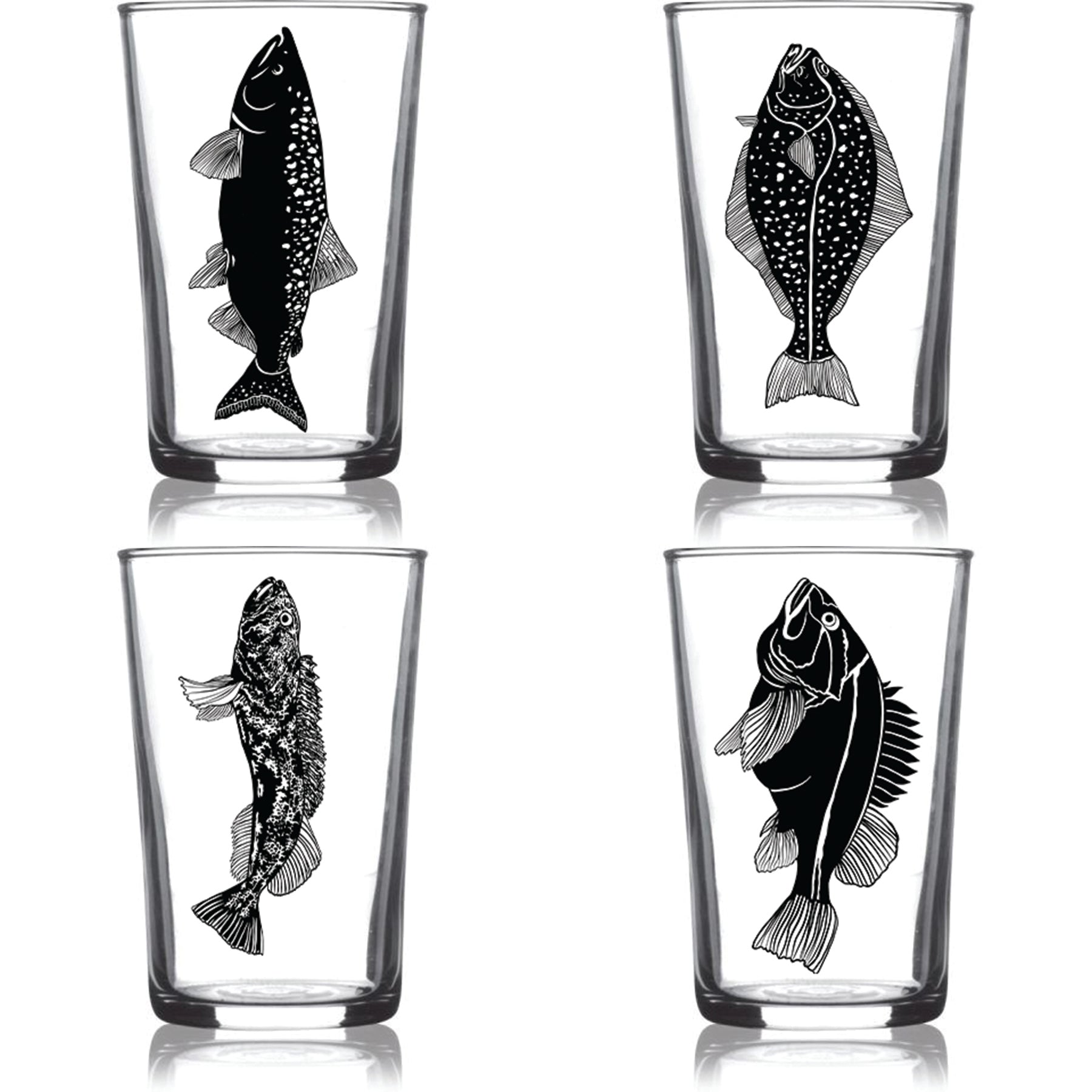6.75oz Euro Wine Juice Glass Fish Series Black 4 Pack Boxed Set