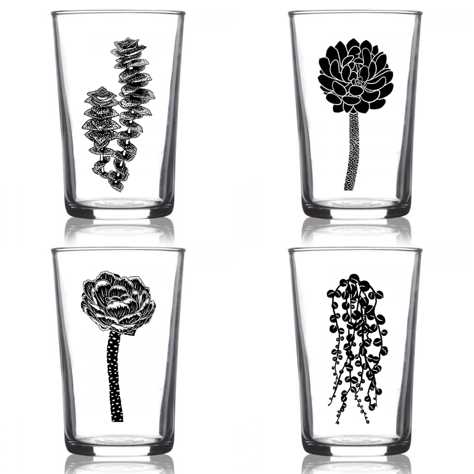 6.75oz Euro Wine Juice Glass Succulent Garden Series Black 4 Pack Boxed Set
