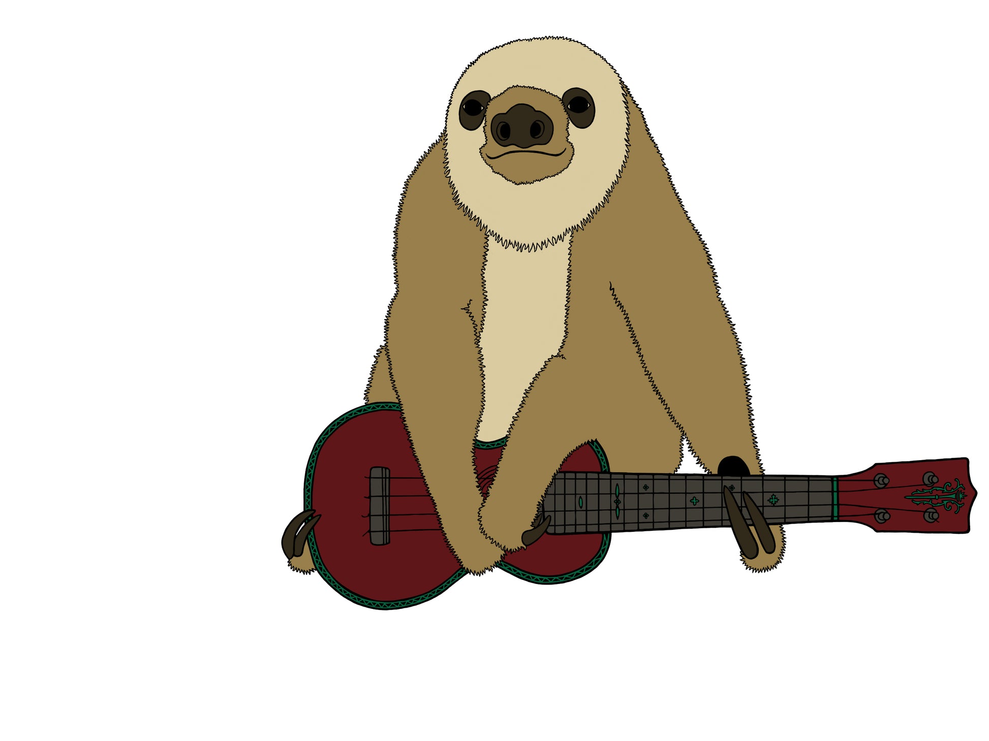 Zososlow is a sweet soft spoken sloth from Costa Rica, he made his move to Tillamook, Oregon the slowest way possible (other than by foot), he took a blimp & parked it at the Tillamook Air Museum (Blimp hanger)! Bringing only his Ukulele & a pineapple to plant, Zososlow was grateful to find a great band to play with, and be able to sell his pineapples at the local Farmer's Markets.
